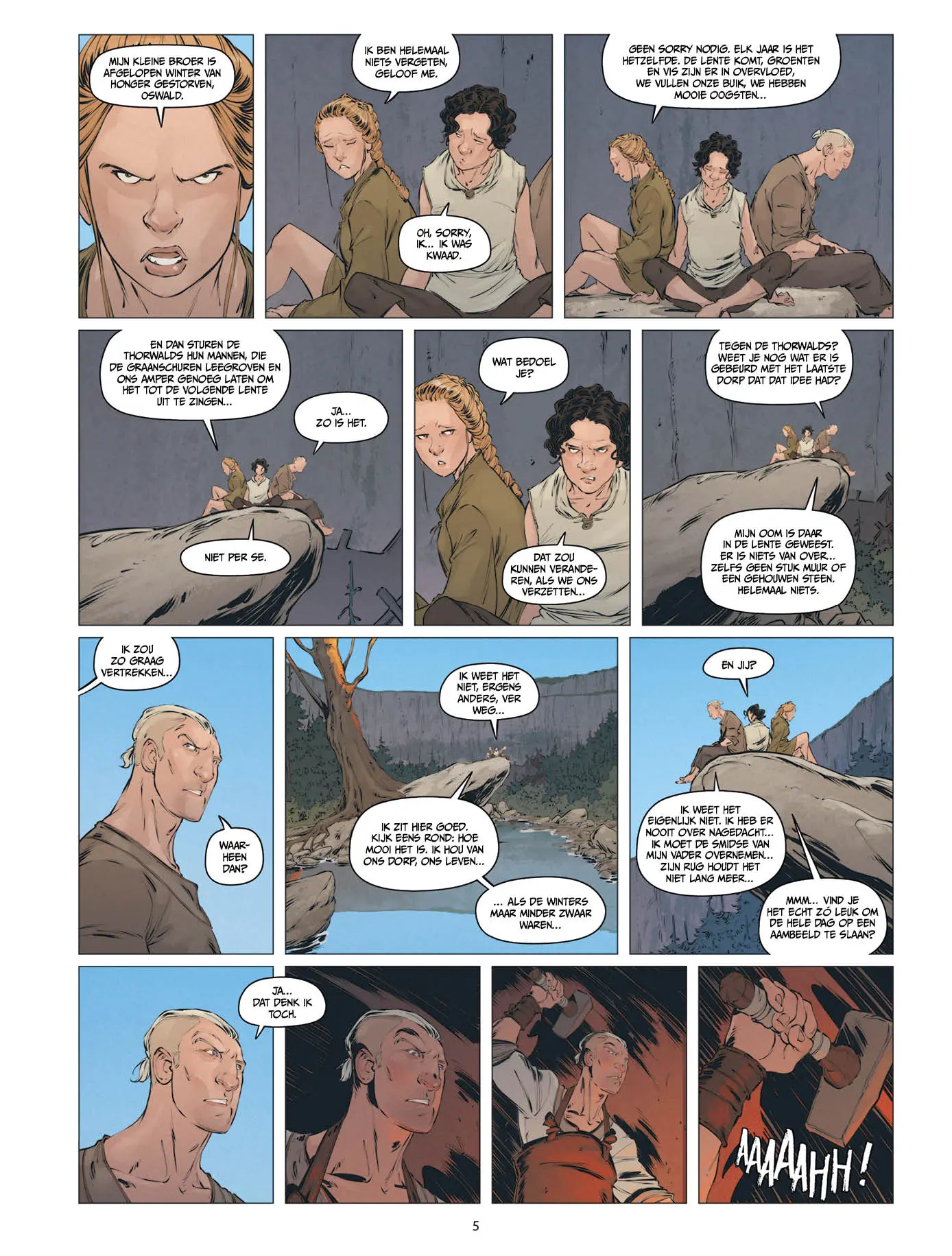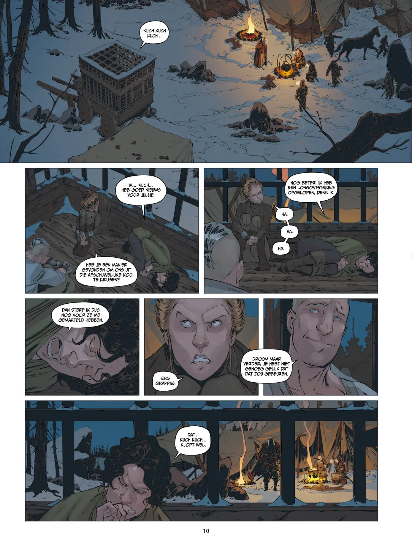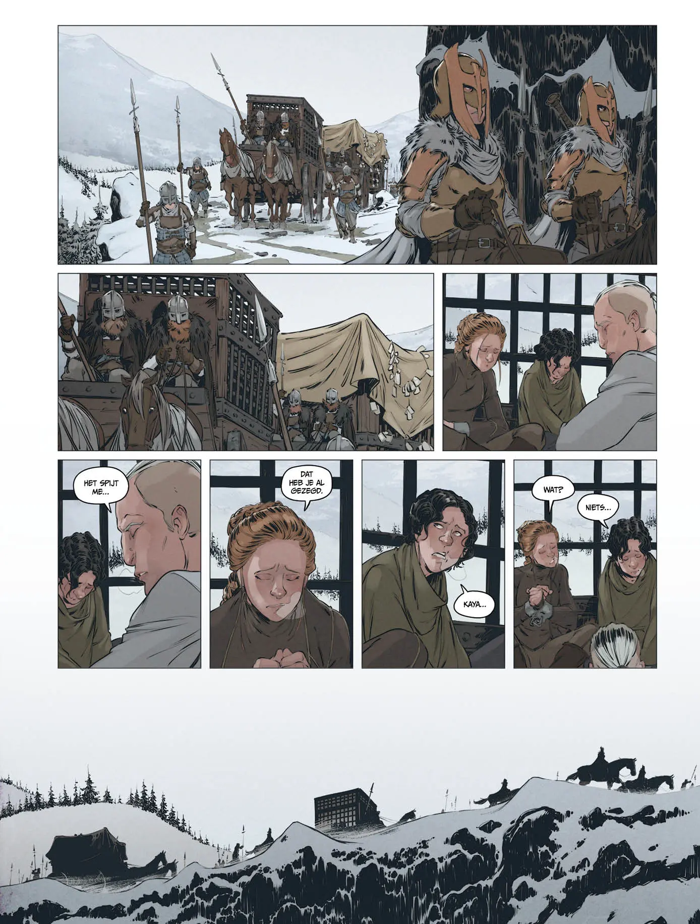 Visueel sluit Sylvain Guinebaud daar mooi bij aan: helder, leesbaar en expressief, met personages die “geleefd” aanvoelen. De enscenering van actie en natuur is sober maar trefzeker en de sfeer is consequent donker en kil. Het resultaat is een fantasieverhaal dat tegelijk toegankelijk en grimmig is en dat vooral zin geeft in het vervolg: dit is duidelijk het eerste luik van een tweeluik, met net genoeg onthullingen om te prikkelen en net genoeg open vragen om je te laten doorlezen.
